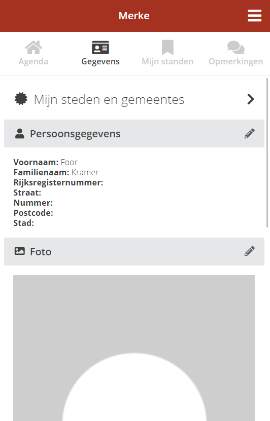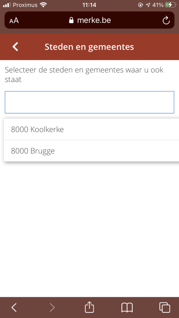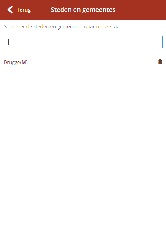 Op het tabblad “gegevens” kan u onder “Mijn steden en gemeentes” aanduiden op welke steden u allemaal aanwezig bent.